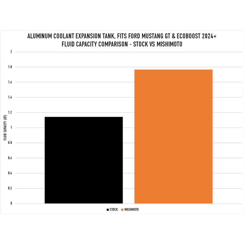 Introducing the Mishimoto Coolant Expansion Tank for the 2024+ Ford Mustang GT and EcoBoost. This direct-fit solution boasts all-aluminum construction that wona**t yellow, crack, or leak with repeated heat cycles like the stock plastic tank will. Internal baffles prevent air entry during aggressive driving, while a 55-percent increase in coolant capacity improves heat dissipation. A high-visibility sight glass and stamped cold-fill line allow quick coolant level checks. Choose from a polished or micro-wrinkle black powder coated finish to match your style. Our expansion tank also features a coolant overflow port that allows you to install an NHRA-mandated overflow tank. This tank installs in an hour or less and is backed by the Mishimoto Lifetime Warranty to combine performance and aesthetics for a confident driving experience as long as you own your 2024+ Mustang.